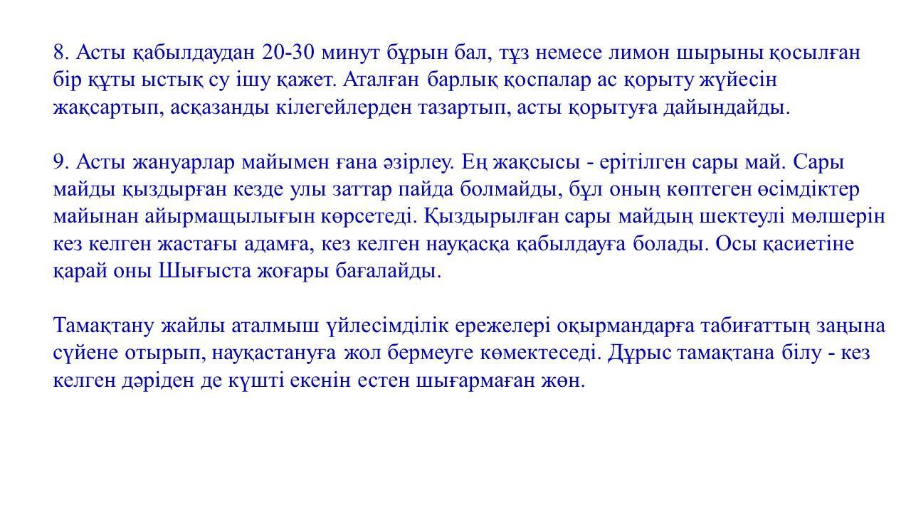 сапасына, асхана тазалығына тексеріс жүргізді.