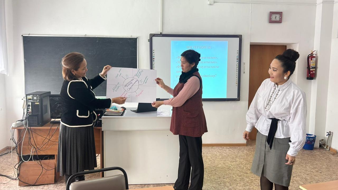Сергіту сәтінде әр мұғалімге алдыларында тұрған таза А4 қағазынан қайшы қолданбай адам бейнесін қиып шығу тапсырылды. Бұл әдіс арқылы әр адам жеке тұлға, ал рухани тұрғысынан дамыған, шешім қабылдай алатын, шығармашыл тұлға шығару мұғалімдердің міндеті екені айтылды. Коучинг соңында «пазл» әдісімен топқа бөліну үшін құраған киіз үй, сандық, ұлттық әшекейлер бойынша функционалдық сауаттылыққа бағытталған тапсырма құрастыру ұсынылды. Мұғалімдер әр топта бірлесіп жұмыс жасап, нәтижесінде оқушыларға арналған керемет есептер құрастырып, сол бойынша түсініктеме жүргізіп қорғады. Нәтижесінде мұғалімдер өздері де жақсы есептерді құрастыра алатындарына таңдану мен сенімділік те пайда болды. Қорытындылай келе оқушылардың функционалдық сауаттылығын арттыру үшін мұғалім креативті, жан-жақты, әр түрлі әдіс-тәсілдерді қолдана алатын болуы керек. Сонымен қатар әр сабақта функционалдық сауаттылыққа бағытталған тапсырмаларды беріп отыруы керек. Мұғалімдер белсене қатысты. Кері байланыс QR-код арқылы берілді. Коучинг өз дәрежесінде жақсы өтті.
